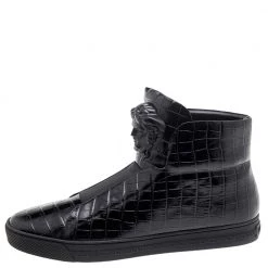 Versace Black Croc Embossed Leather Medusa Loafers Size 45 For Men