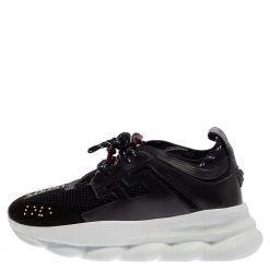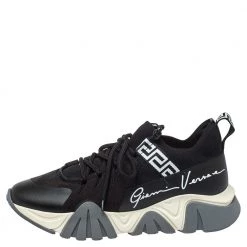 Versace Black Patent Leather And Signature Canvas Medusa Detail Slip On Loafers Size 44 For Men