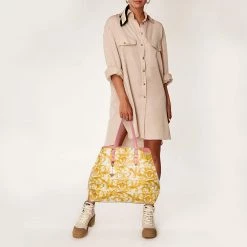 Versace Beige/Turquoise Medusa Print Coated Canvas And Patent Leather Patch Diaper Bag For Women
