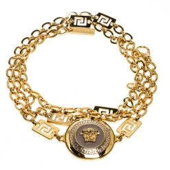 Versace Yellow Gold Tone Crystal Medusa Charm Necklace For Women