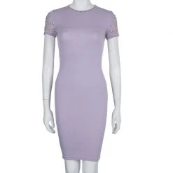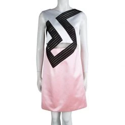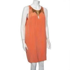 Versace Peach Knit Striped Button Front Cardigan M For Women