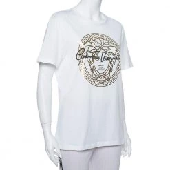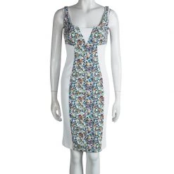 Versace Wool Knit & Baroque Printed Silk Paneled Button Front Cardigan L For Women