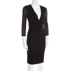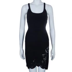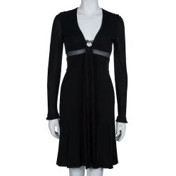 Versace Black Pointelle Knit Button Front Long Sleeve Cardigan XL For Women