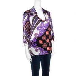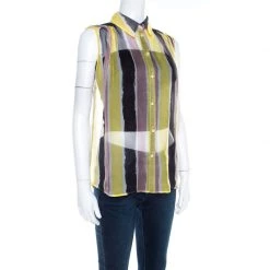 Versace Collection Multicolor Striped Sheer Silk Pearl Button Detail Sleeveless Shirt M For Women