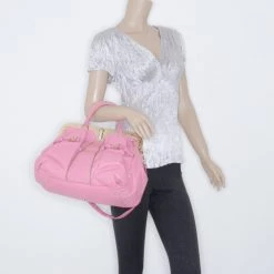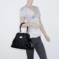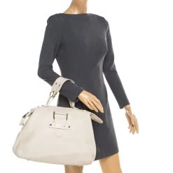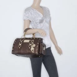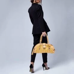 Versace Beige & Yellow Leather And Croc Embossed Leather Woven Detailed Bowler Bag For Women