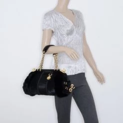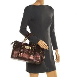 Versace Beige & Yellow Leather And Croc Embossed Leather Woven Detailed Bowler Bag For Women