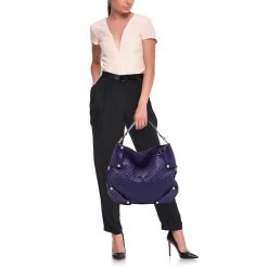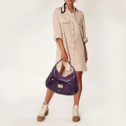 Versace Purple Leather Demetra Vanitas Top Handle Bag For Women