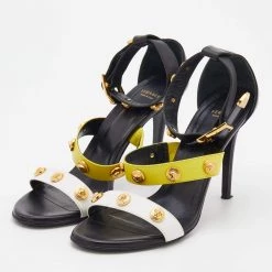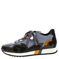 Versace Multicolor Mesh, Leather And Patent Leather Medusa Logo Low Top Sneaker Size 40.5 For Women