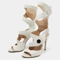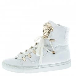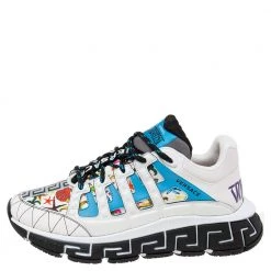 Versace White Leather And Canvas Tresor De La Mer Trigreca Lace Up Sneakers Size 39 For Women