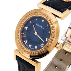 Versace Blue Gold Plated Stainless Steel Leather V-Signature VLA Women’s Wristwatch 35 Mm For Women