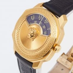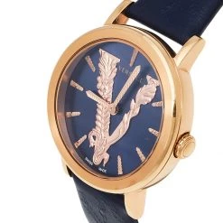 Versace Blue Gold Plated Stainless Steel Leather Virtus VEHC Women’s Wristwatch 36 Mm For Women