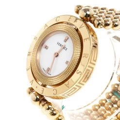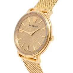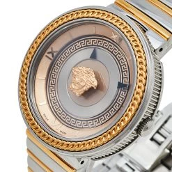 Versace Blue Rose Gold Plated Stainless Steel Leather Vanitas VK7 Women’s Wristwatch 40 Mm For Women