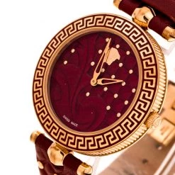 Versace Red Gold Plated Stainless Steel & Leather Vanity P5Q Women’s Wristwatch 35 Mm For Women