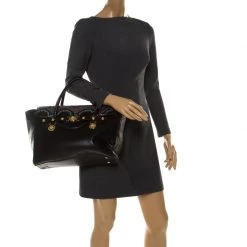 Versace Black Leather And Monogram Fabric Medusa Slip On Loafers Size 44 For Men