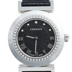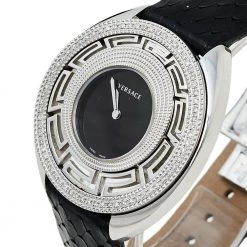 Versace Black Stainless Steel Python Leather Diamonds Destiny 67Q Women’s Wristwatch 39 Mm For Women