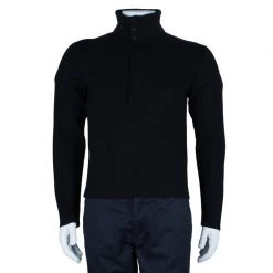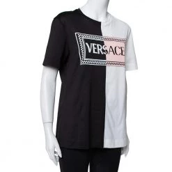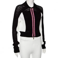 Versace Monochrome Open Knit Contrast Trim Zip Front Sweater M For Women
