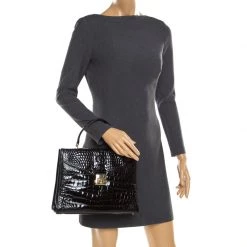 Versace Black Croc Embossed Leather Medusa Loafers Size 45 For Men
