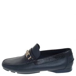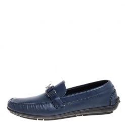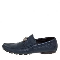 Versace Blue Leather Medusa Detail Slip On Loafers Size 41 For Men