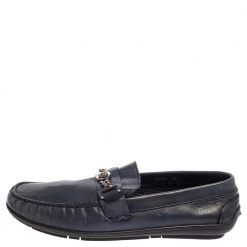 Versace Blue Leather Medusa Icon Chain Detail Loafers Size 45 For Men