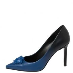 Versace Blue Leather Medusa Embellished Slip On Loafers Size 45 For Men