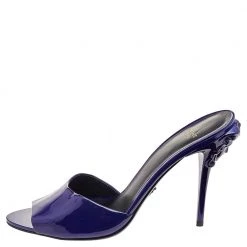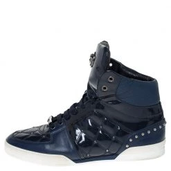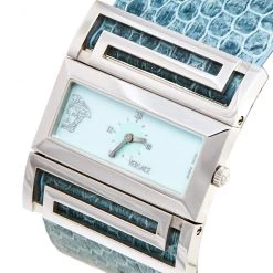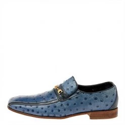 Versace Blue Ostrich Leather Medusa Chain Detail Loafers Size 41 For Men