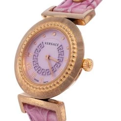 Versace Lilac Gold Plated Stainless Steel Leather Vanity P5Q Women’s Wristwatch 35 Mm For Women