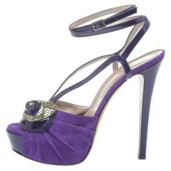 Versace Purple Suede And Patent Leather Floral Metal Mesh Platform Sandals Size 39 For Women