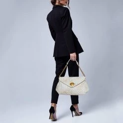 Versace White Quilted Leather Coin Purse And Key Charm For Women