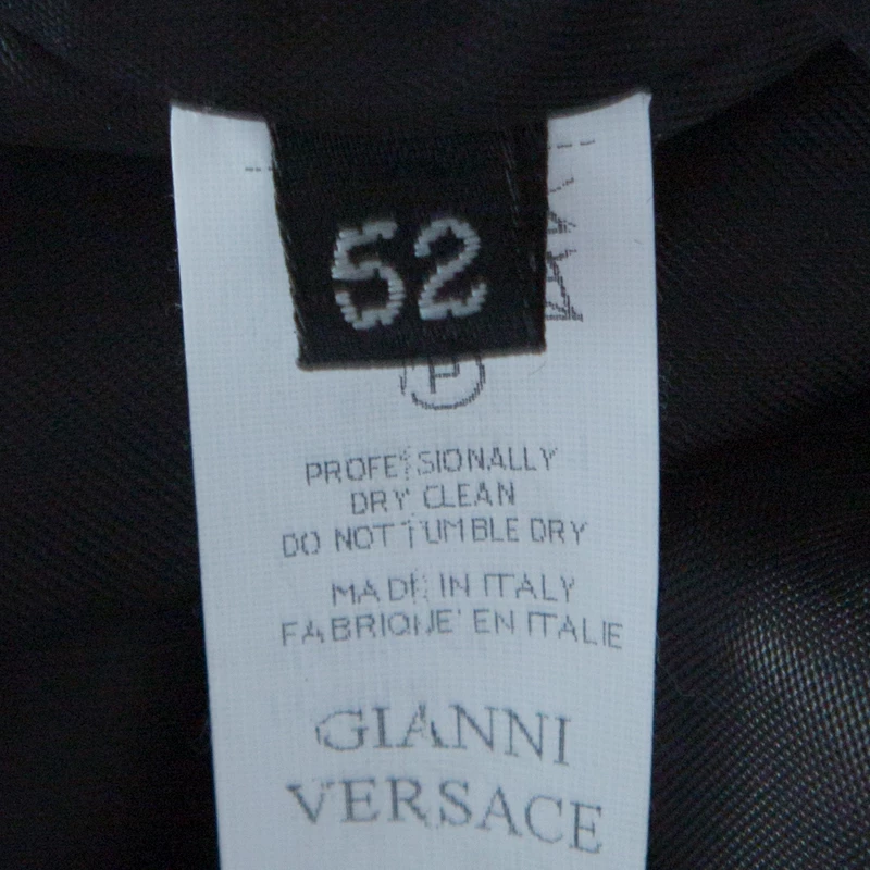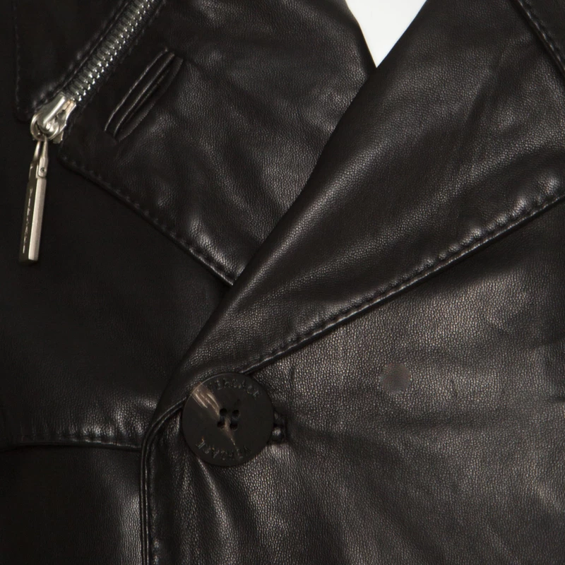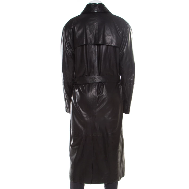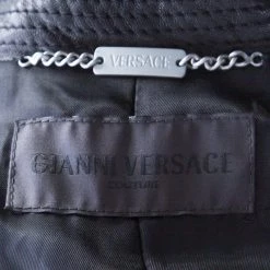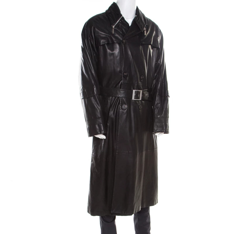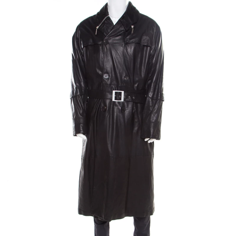 This gorgeous Gianni Versace Couture overcoat, made from leather, will make others nod in admiration. It comes in a double-breasted design accompanied by zippers and a belt for added shape. In terms of both tailoring and design, this coat is a marvel.