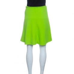 The house of Gianni Versace makes sure you stay the centre if attention wherever you go! Bringing to you a chic mini skirt in a bright shade of green, the design house ensures that your co-ordinating woes are kept at bay. This skirt, featuring a breezy circular silhouette accompanied by a smart textured buckle belt is crafted in soft wool to keep you comfortable all day long while you flaunt a look of stylish panache.