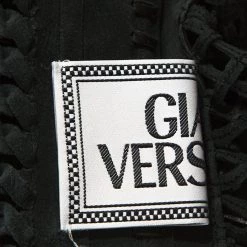 This magnificent creation by Gianni Versace Vintage is something you will never get over with. The stylish piece is tailored from leather and is designed fabulously with fringes, cutouts and whipstitch detailing all over the long silhouette. This excellent overcoat, featuring long sleeves, looks classy in black.