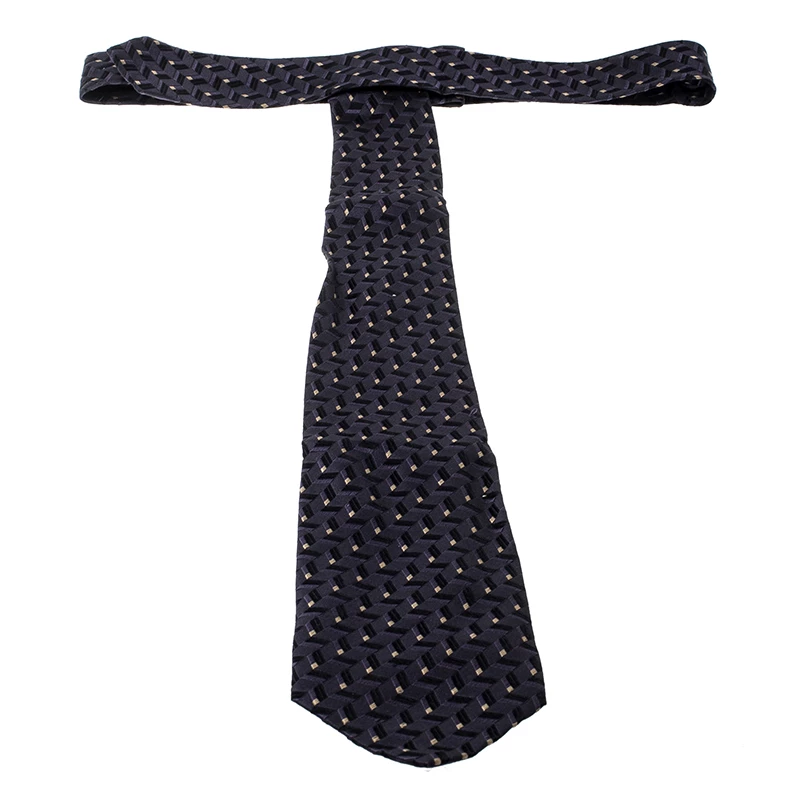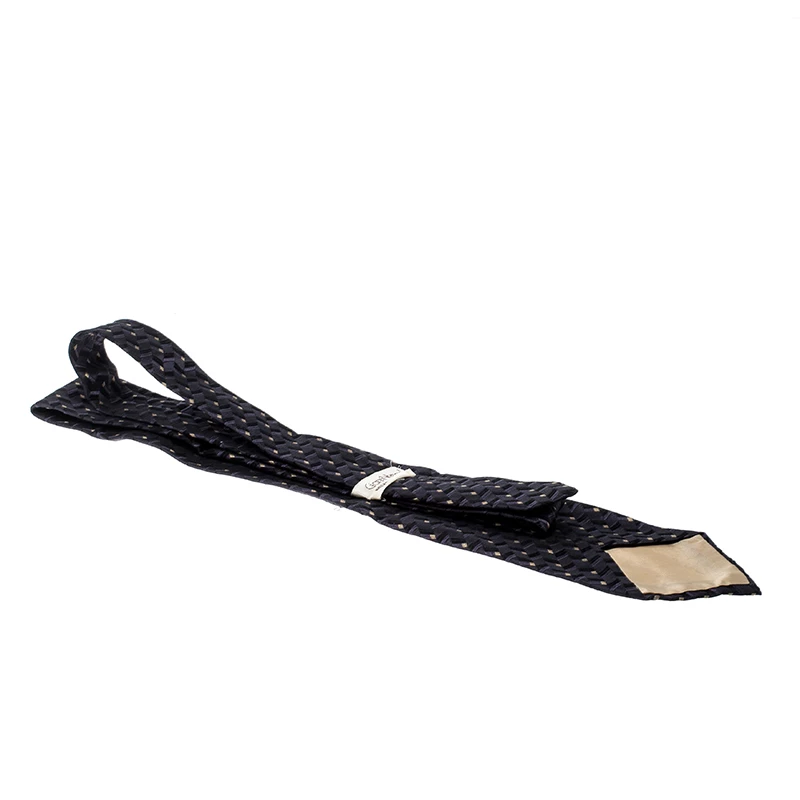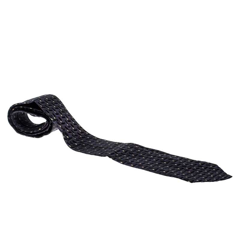 The jacquard knitting and contrasting patterns add an edgy touch to this fine silk tie from Gianni Versace. Introduce a touch of elegance to your formal ensemble with this lovely piece.