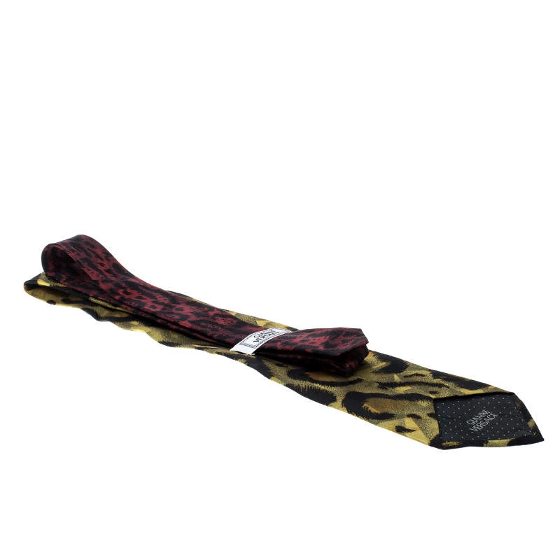 The animal print in contrasting shades of yellow and red add an edgy touch to this fine silk tie from Gianni Versace. Introduce a pop of fun to your formal ensemble with this lovely piece.