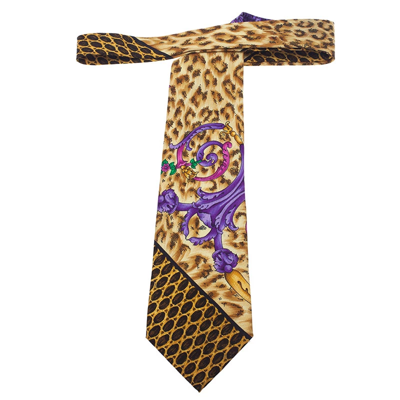 For the love of animal prints fashion, wear this Gianni Versace leopard printed silk cut tie with a formal or casual ensemble.
