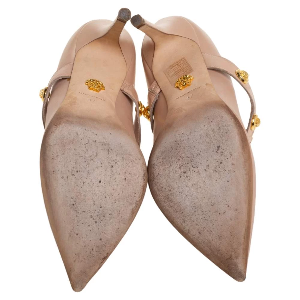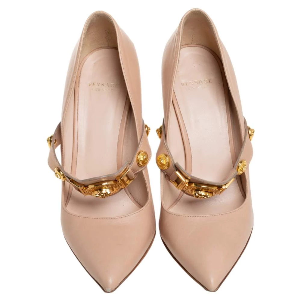 It’s a simple pump that Versace elevates to form this design. Fashioned using leather into a stunning pointed-toe silhouette, the Mary Jane pumps are elevated by 10 cm heels and detailed with a Medusa-embellished strap. Get this pair now!