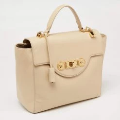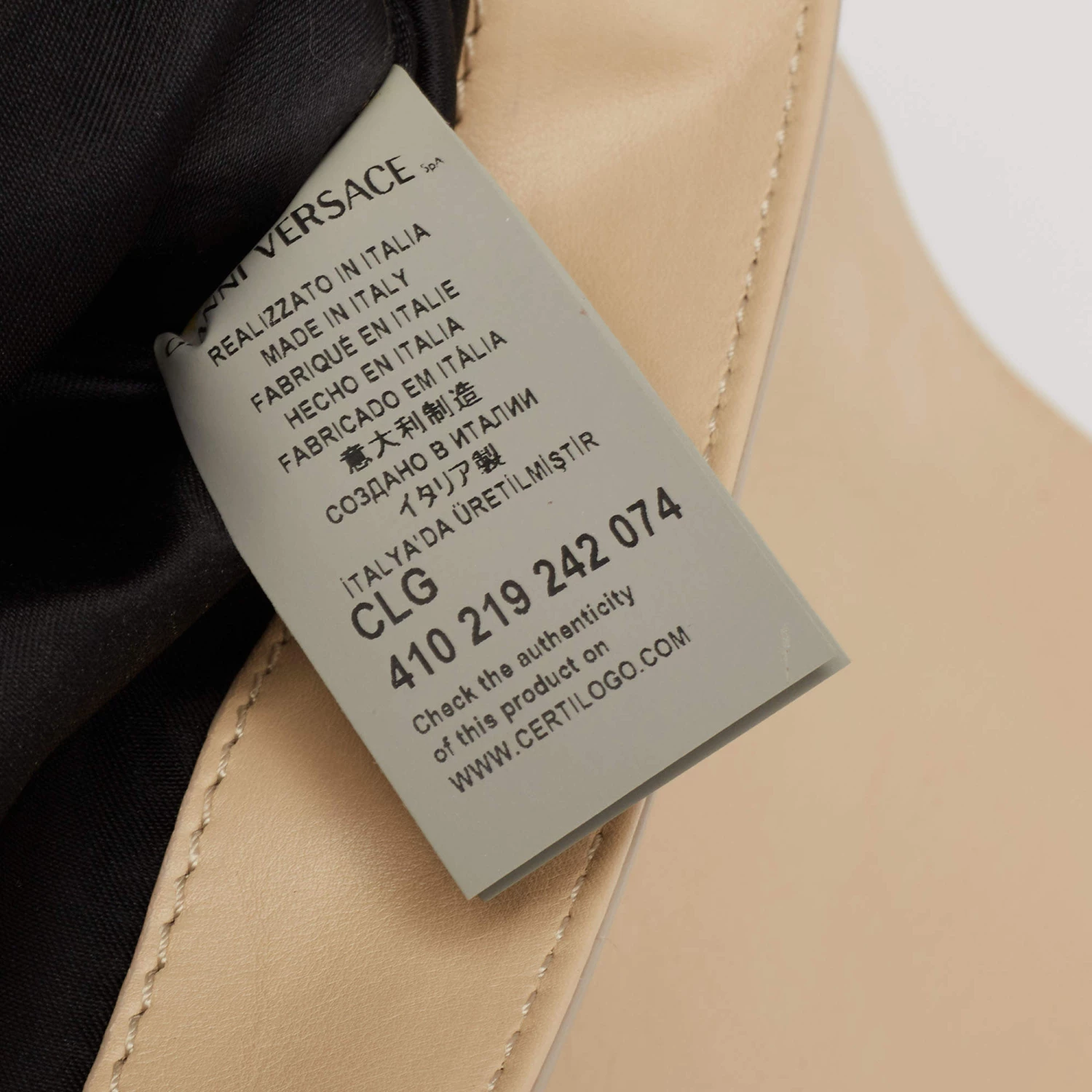 Imparting unparalleled elegance and sophistication, this bag from Versace is made from the finest material in a gorgeous beige hue. While the roomy interior offers ample space, the top handle allows you to carry it with much elan.