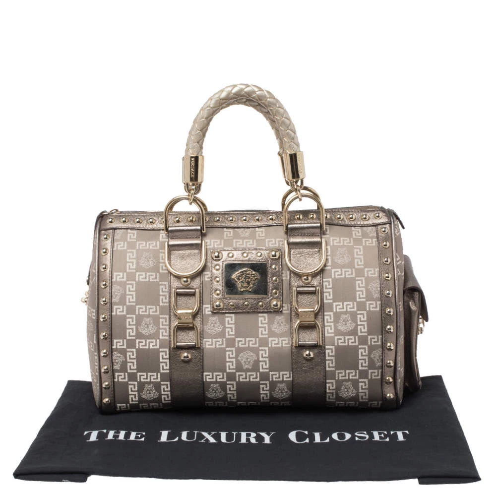 How gorgeous is this satchel from Versace! It carries an outstanding design and a fabulous interplay of fabric and leather with gold-tone hardware. It has a top leading to a satin interior while being held by two top handles. The shape and the brand logo on the front uplift its beauty and make it a buy you will not regret.