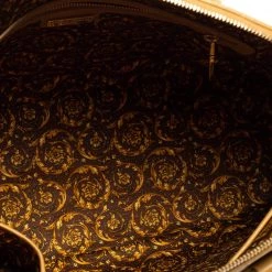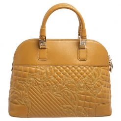 The House of Versace brings you this glamorous Athena Vanitas satchel that will grant you nothing but style and luxury. It is made from beige quilted leather into a sturdy silhouette. It flaunts dual handles, a gold-toned charm on the front, and a shoulder strap. This satchel will definitely add an element of panache to your attire.