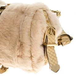 This bold and eye-catching Versace satchel is sure to make heads turn. Crafted from soft rabbit fur and trimmed with python leather, the bag is accented with the signature Medusa-detailed charm on the front and gold-tone hardware. It features dual top handles, buckled trims on the exterior and a fabric-lined interior that will hold all your necessities.
