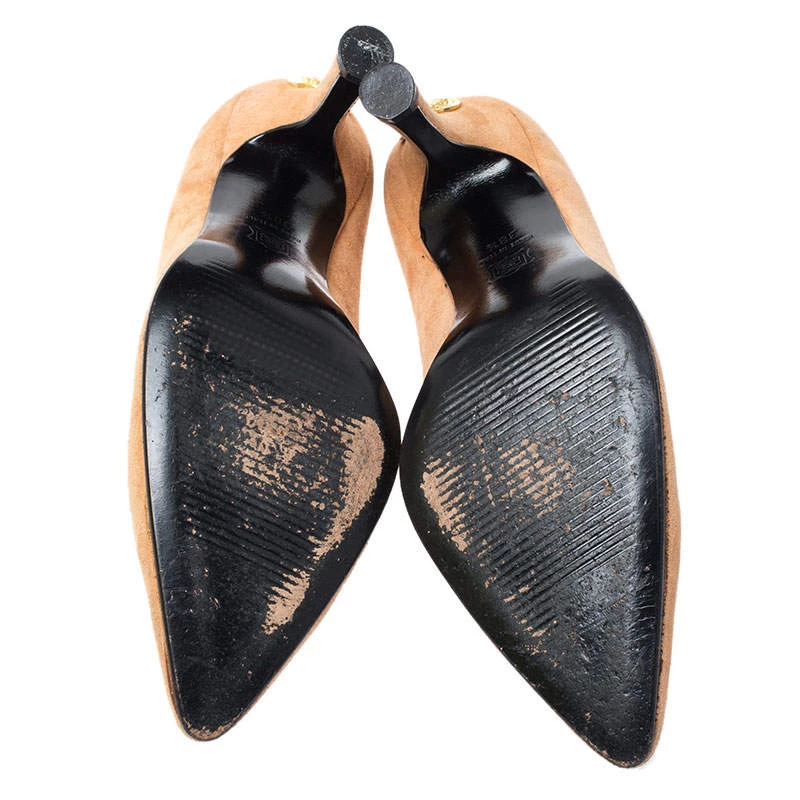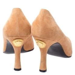 Raise the style bar wherever you go with this pair of Versace pumps. Made of suede in beige and designed with pointed toes and 9.5 cm heels featuring Medusa studs, these will give you the perfect amount of fashion and confidence.