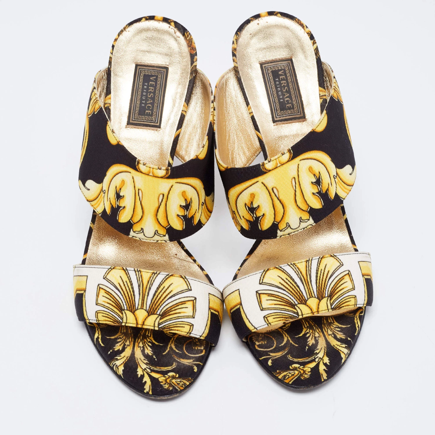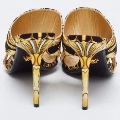 Characterized by an eye-catching Baroque print, these Versace sandals are a statement pair and can take your look to a whole new level. They are skillfully crafted from canvas in a black hue and feature open toes. These sandals have smooth leather insoles and offer maximum comfort while walking.