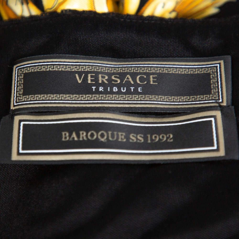 Versace’s instantly recognizable black, white and golden-yellow Baroque print brings a signature element to this alluring silk cropped top. Fashion icons like Irina Shayk have been spotted wearing this crop top. It’s expertly crafted in Italy to a slender silhouette with an elegant sweetheart neckline and soft underwired cups, whilst delicate Chantilly lace accents the skinny shoulder straps and hem. Pair it with the contrasting pleated midi skirt and stiletto heels for a chic after-dark edit.