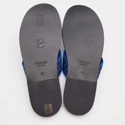 Be the first to review “Versace Black/Blue Leather And Fabric Greca Flat Slide Sandals Size 42 For Men” Cancel reply