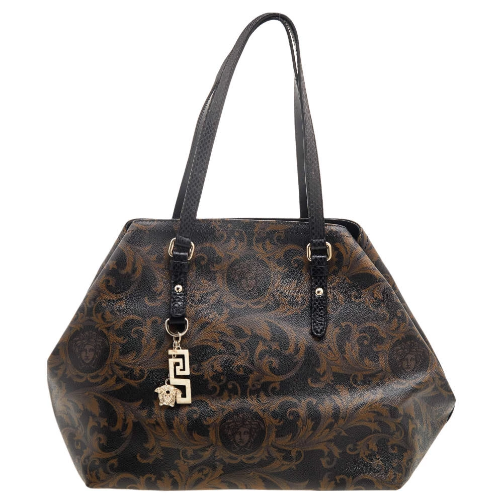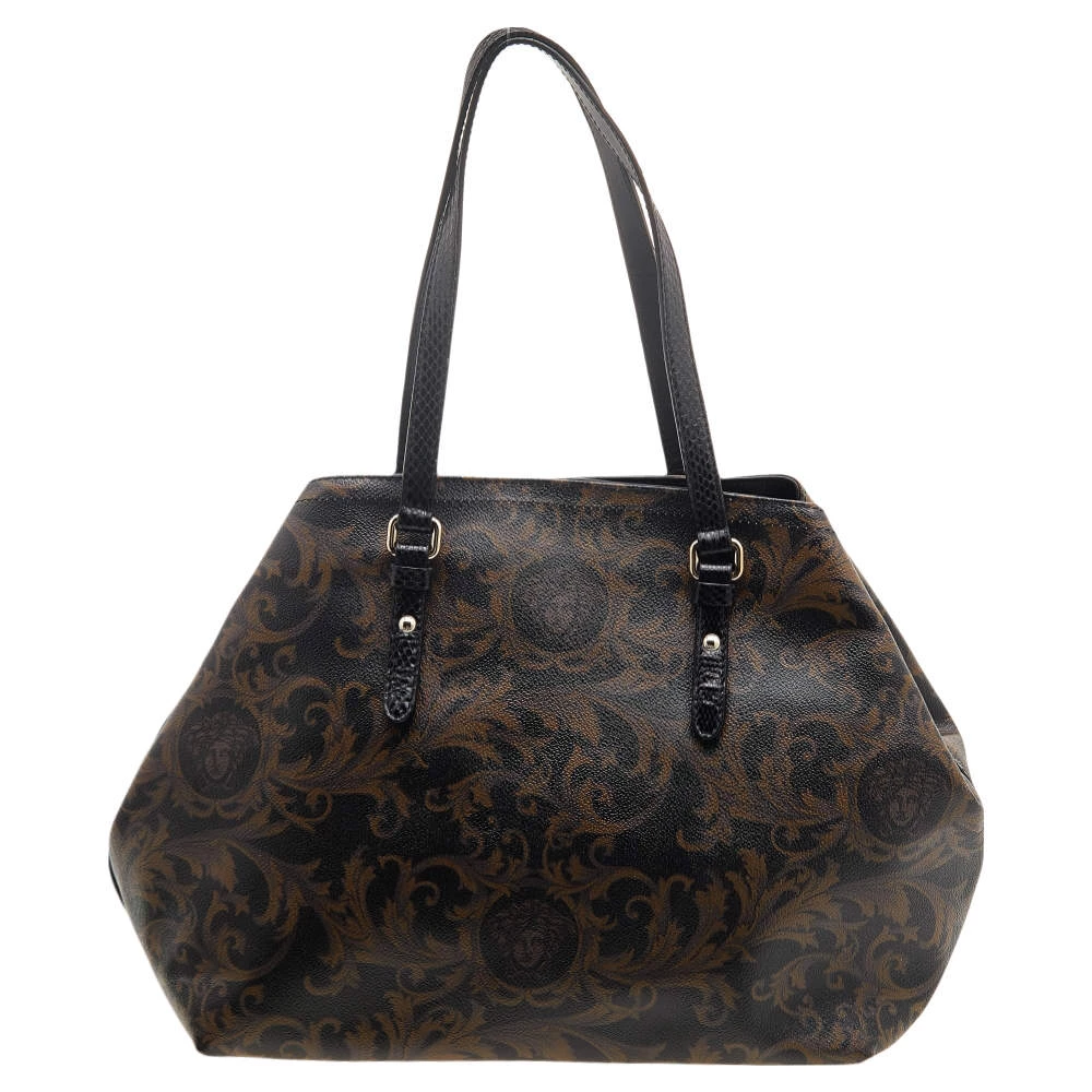 This Versace tote is built for everyday use. Crafted from floral-print canvas and snakeskin leather, the bag opens to a canvas interior spacious enough for your belongings. It is held by dual handles,