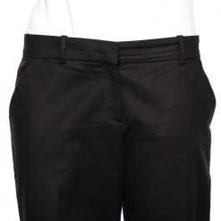 This pair of trousers by Versace ensures a formal style that is full of comfort. Made of a cotton blend, the women’s trousers in black feature two pockets, belt loops on the waistband, and gold-tone detailing at the hem.