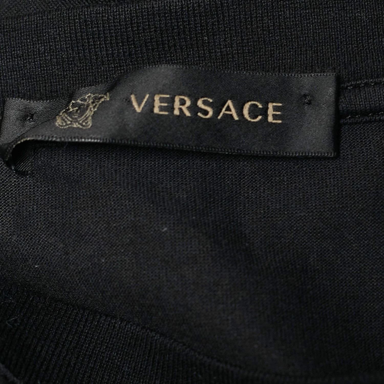 Versace brings you a simple t-shirt elevated by logo prints on the front. It has been tailored from cotton in a black shade and features short sleeves. Style the creation with sneakers and denim pants for a cool and casual look.