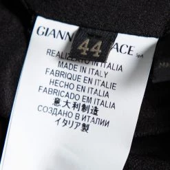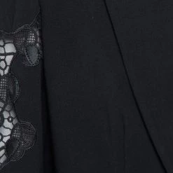 Be fashionably bold with a touch of finesse as you style this fabulous blazer from the House of Versace. It has been tailored using black crepe, which is enhanced by lace inset details. It features a single-breasted style, buttoned closure, and three external pockets. Look classy wearing this blazer!