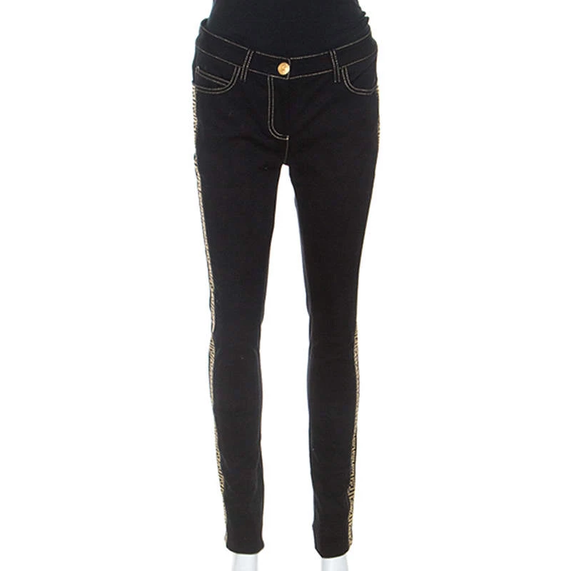 For days when you want to dress casually, this pair of Versace jeans will be just right. Made from cotton and elastane, the black jeans feature Greek key trims on the sides and the usual details of belt loops, pockets, and front zipper. The pair will offer you a nice fit.