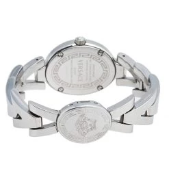 Your unique style deserves a luxurious touch like this V-Glam timepiece from Versace. Its stainless steel case has a diameter of 25 mm and a smooth bezel. The dial features two petite hands and diamond hour markers and the quartz watch is complete with a stainless steel bracelet with V-shaped links. Equipped with a water resistance of 30 meters, this stunner will look perfect on the wrist of a watch lover like you!