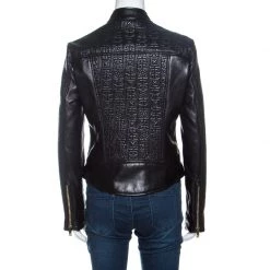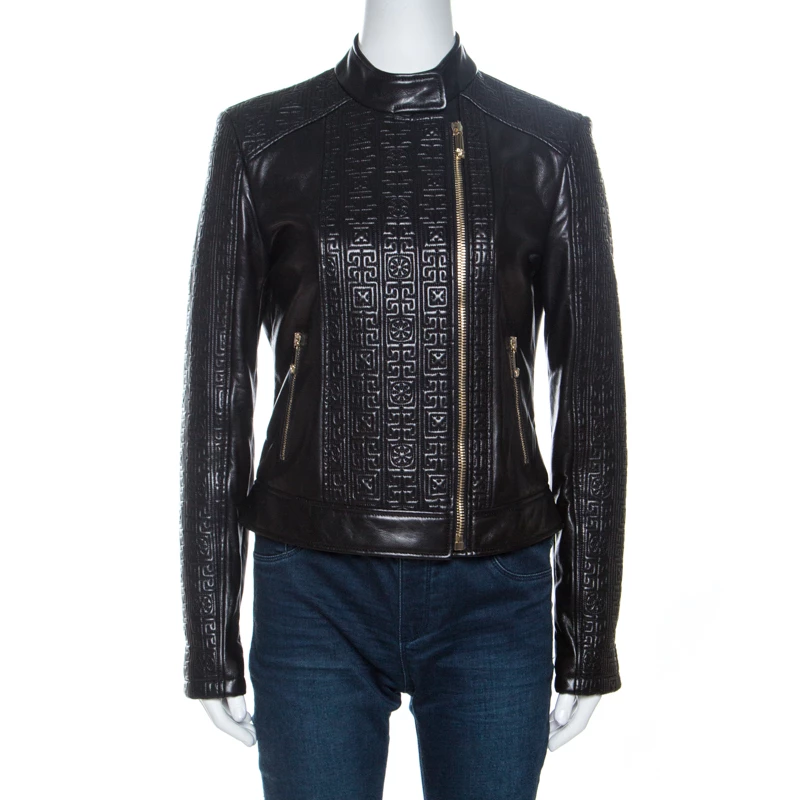 There’s just some fashion magic that leather jackets bring to one’s closet. They are a staple for one’s style. Versace brings you this black jacket beautifully tailored from leather and designed with embossed details, long sleeves, zip closure and pockets.